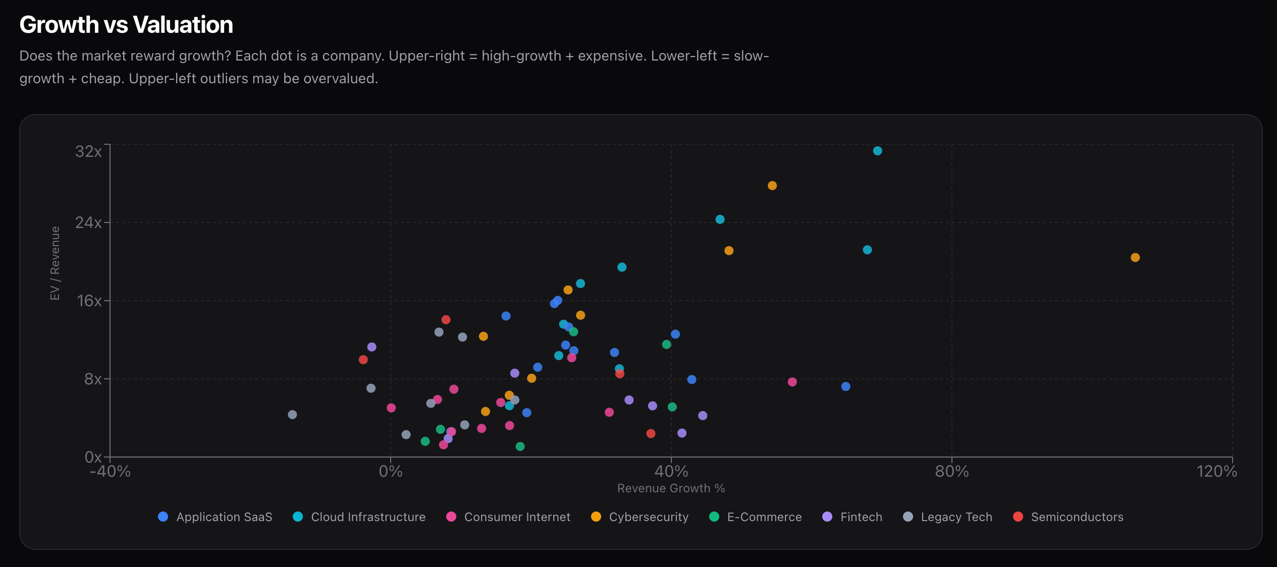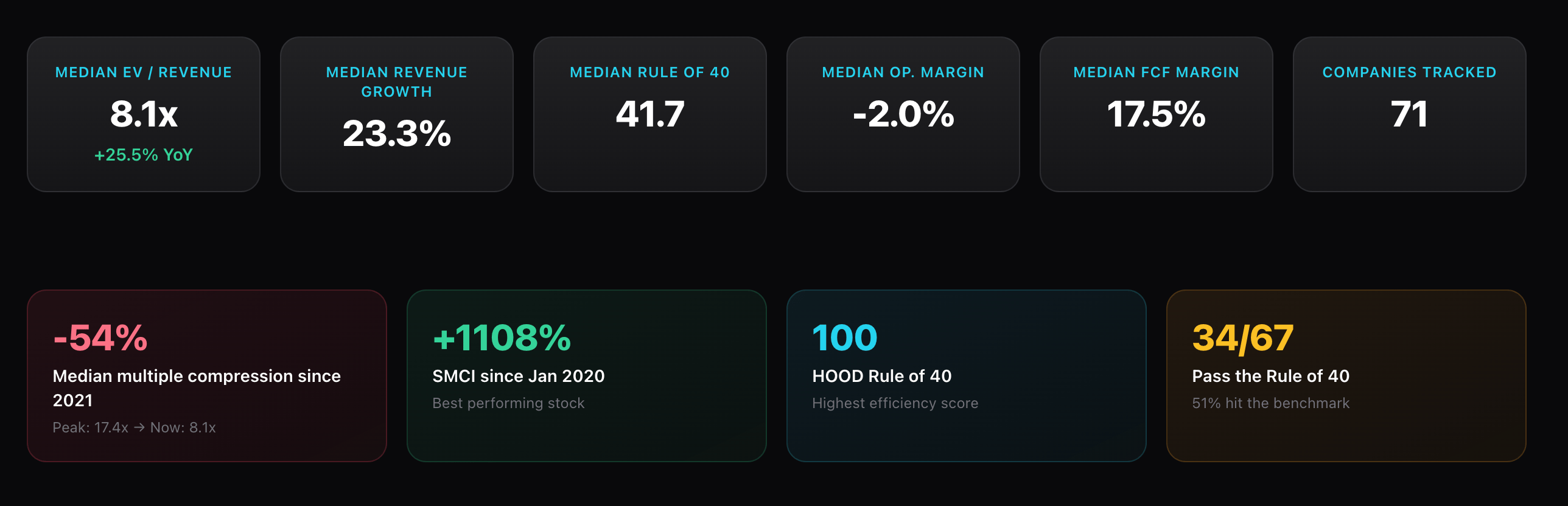 I built a dashboard tracking valuation multiples across 71 public tech companies since 2021, and the data tells a clear story.